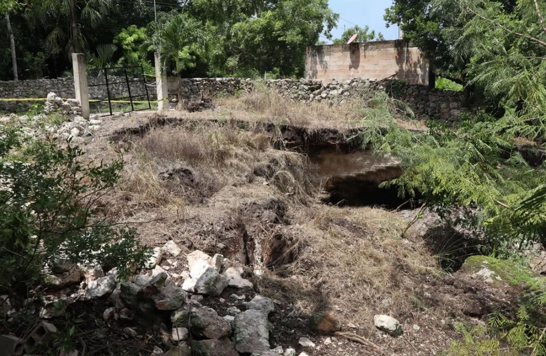 Un hundimiento de tierra registrado en un predio de la colonia San Rosa de Lima, en Tizimín, provocó la movilización de cuerpos de seguridad y emergencia.